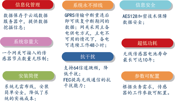 本方案對供暖系統(tǒng)中各點進行實時溫度監(jiān)測,實現(xiàn)了供暖系統(tǒng)的溫濕度監(jiān)測智能化、信息化。居民室內(nèi)安裝無線溫度傳感器,周期性采集環(huán)境溫度數(shù)據(jù)并上報到網(wǎng)關(guān),再由網(wǎng)關(guān)通過GPRS或CDMA方式上傳至互聯(lián)網(wǎng)中的